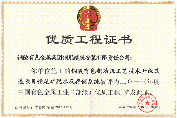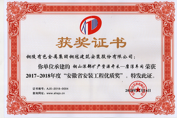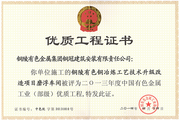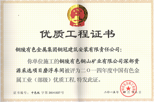 • 銅山磨浮—安裝優(yōu)質工程獎