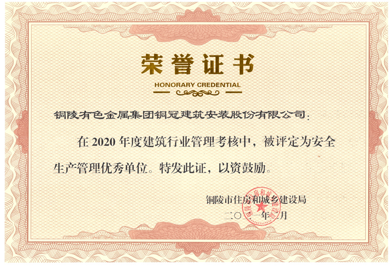 • 銅陵市2020年度安全生產管理優(yōu)秀單位